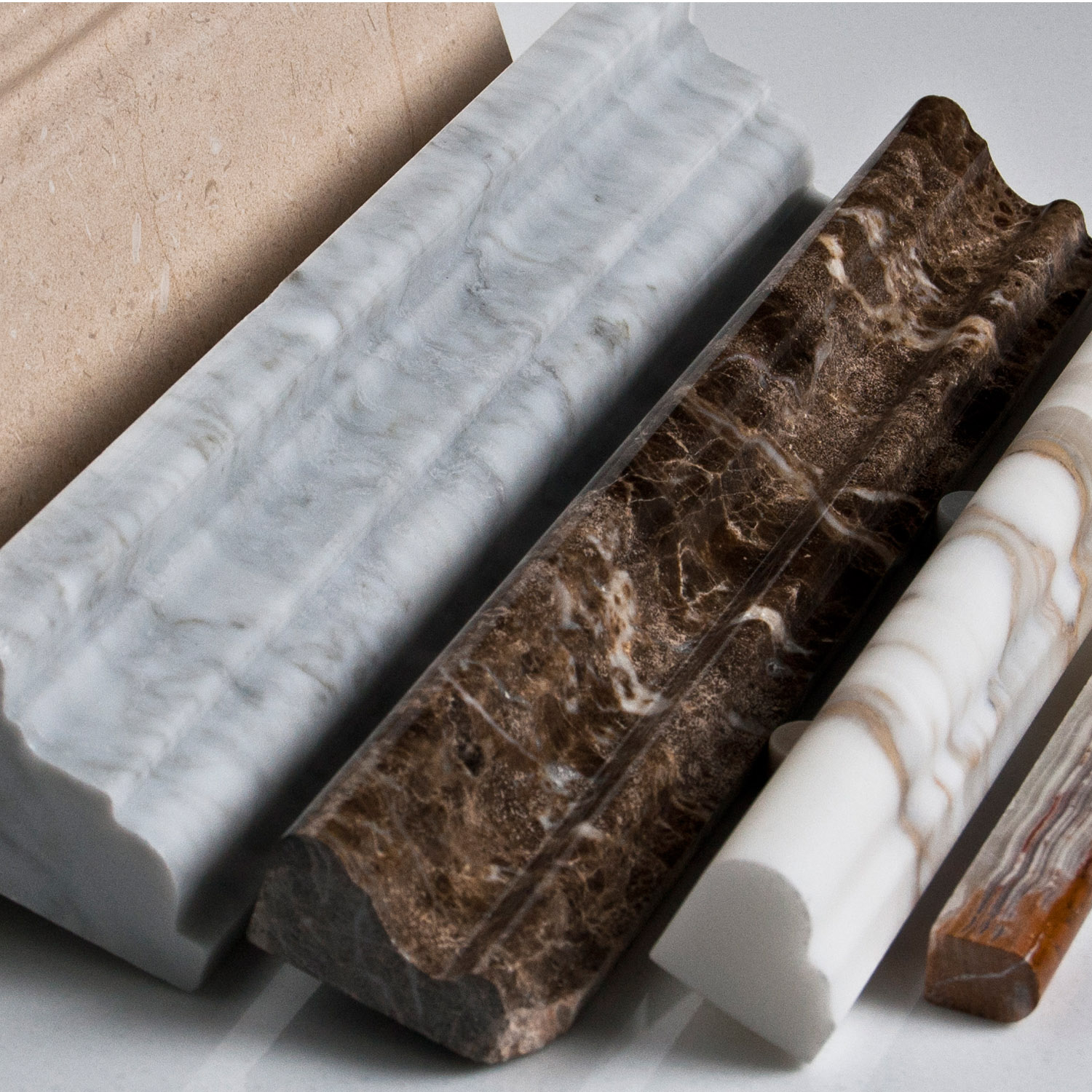 Natural stone moldings available in a wide range of colors, profiles and finishes.